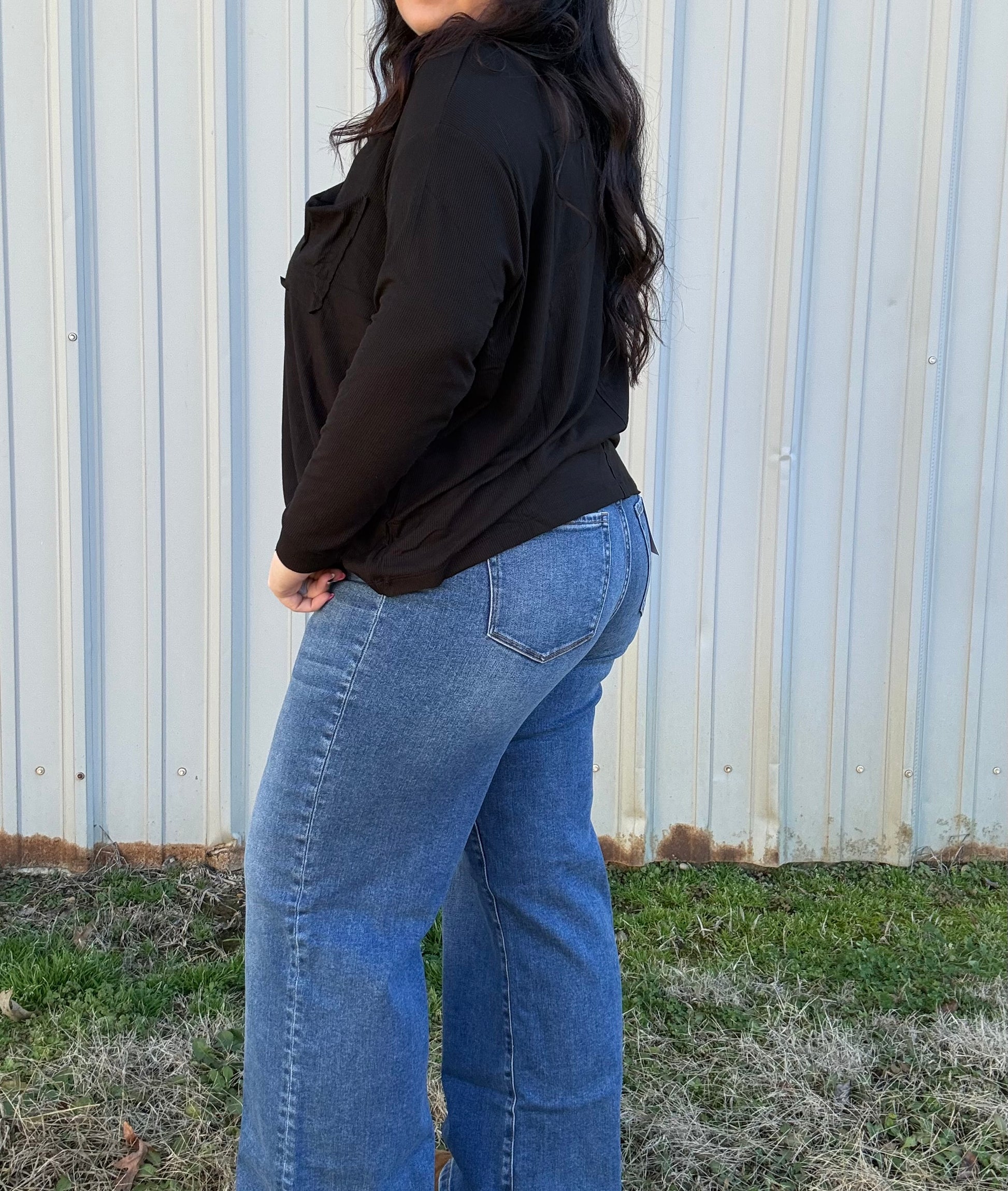 medium wash, wide leg. High waist.